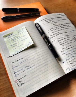 Using my good pens, rather than just possessing them, requires paper. I’ve always had some type of planner, book or journal to record notes and task items. Post-it Notes, Rhodia or Moleskine journals and Levenger Circa products adequately fill my paper need.